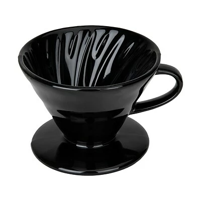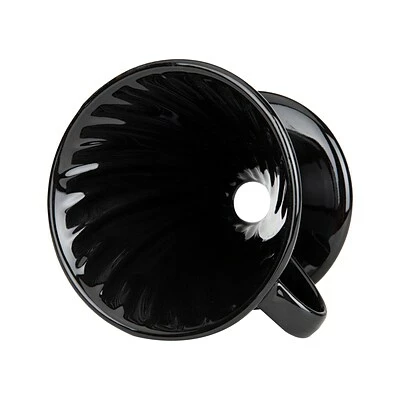 Made of heat-resistant ceramic in black, this pour-over coffee maker holds a #2 cone filter and maintains the temperature of your coffee throughout the brewing process