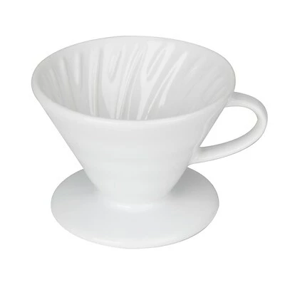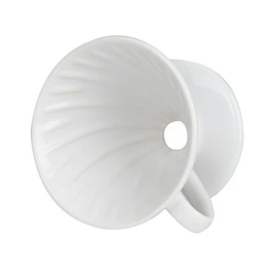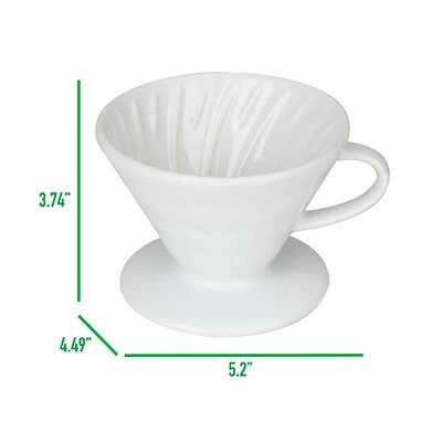 Made of heat-resistant ceramic in white, this pour-over coffee maker holds a No. 2 cone filter and maintains the temperature of your coffee throughout the brewing process