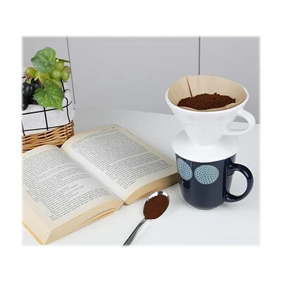 Brew high-quality coffee at home in minutes using this elegant ceramic pour-over coffee dripper designed to fit perfectly over the mouth of your mug