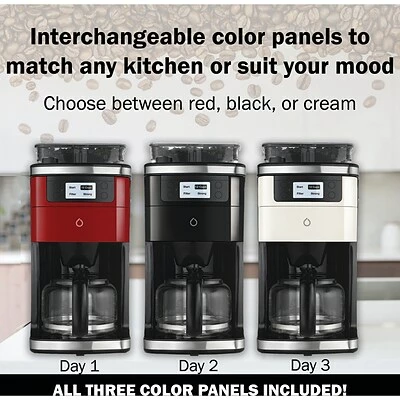 Smarter coffee machine comes with three different panels (red, cream, black) to best fit to your kitchen