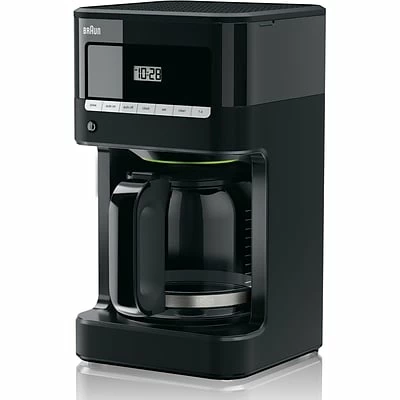 Like the perfect brew, quality lies in the details. Braun’s BrewSense 12-cup Drip Coffee Maker, model KF7000BK, blends thoughtful design and reliability for rich, bold coffee in the comfort of your home. Braun’s years of brewing knowledge, attention to detail and unique PureFlavor system bring out all of the savory richness and flavor that make for a satisfying coffee experience. The streamlined design and sleek black finish allow Braun’s BrewSense Coffee Maker to be the perfect complement to any contemporary kitchen. For the ultimate in precision, the unique carafe lid seals in flavor, while the anti-drip system allows you to pour any time during the brewing cycle. A fully automatic 24-hour programmable timer means your much-needed first cup of coffee will be waiting for you when you want it. Once the familiar aroma of freshly ground, brewed coffee fills your kitchen, you know something special awaits you. Discover rich, fresh-brewed coffee every day, with Braun.