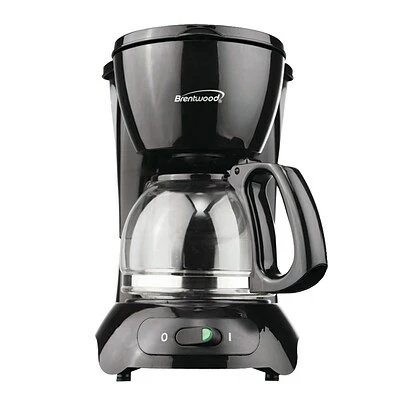 The Brentwood coffee maker in black, efficiently brews 4 cups of coffee at a time. The 650 W coffee maker with removable filter basket, has cool touch housing and handle that quickly cool the appliance without worrying of getting burned. The water level indicator helps to know the level of water in the system. The on/off switch helps in easy operation of the unit. The warming plate helps to keep the coffee hot for hours. This coffee maker with anti-drip feature, comes with a tempered heat-resistant glass serving carafe.