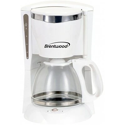 Brentwood® 900 W 12 Cup coffee maker in white color has warming plate that helps in keeping brewed coffee hot. Maker has anti-drip feature, carafe made of tempered heat-resistant glass and is perfect for small office/family.
