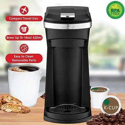 The powerful 800-Watt Brentwood Single-Serve Coffee Maker with Reusable Filter Basket for K-Cup Pods is everything you need to start enjoying the ideal cup of coffee. Just choose your favorite K-Cup, soft pod, or coffee grounds, add water and push to start brewing. Save money using the reusable mesh filter basket. The unit holds up to 14 oz. of water. Easily fill the unit with water using the top-loading lid. The filter cup, K-Cup/Soft Pod holder, and drip tray are removable for easy cleaning. This coffee maker and its removable parts are completely BPA-free.