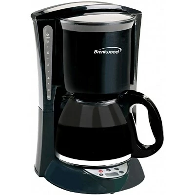 Brentwood® 900 W 12 Cup digital coffee maker in black color has warming plate that helps in keeping brewed coffee hot. Maker has anti-drip feature, carafe made of tempered heat-resistant glass and is perfect for small office/family.