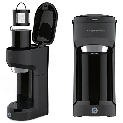 When you don’t need the hassle of brewing a whole pot of coffee, the Frigidaire 1 Cup 700 Watt Retro Coffee Maker is the answer! This Black coffee makers’ retro design will look great any where you put it, and its dishwasher-safe brew basket makes this virtually maintenance-free. Accommodating both regular coffee mugs and travel mugs, this little Black brewer is extremely versatile.