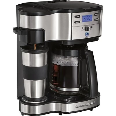 A good coffeemaker is the heart and hub of a productive workplace. This Hamilton Beach two-way brewer gives you more flexibility when it comes to brewing, whether you are preparing a quick cup for yourself or providing hot, fresh coffee at a major meeting. With its handsome stainless-steel design, the brewer will make a welcome and practical addition to your office.