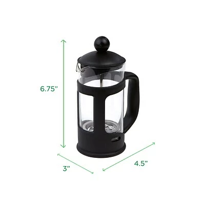 If you love a cup of fresh brewed coffee, then this convenient and sturdy French Press is perfect for the start of your day. The heat resistant glass is protected by the plastic design making it perfect for on the go trips and events. The mesh filter keeps the coffee grinds in the press and not in your cup.