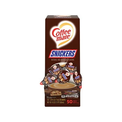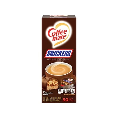America’s #1 creamer brand introduces Snickers creamer singles, a rich blend of chocolate, nut and caramel flavors. Coffee-mate singles blend quickly and completely into hot or cold beverages.