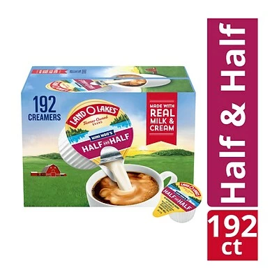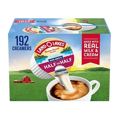 Land O Lakes Mini Moos provides rich and creamy taste of Real Dairy Half and Half to make your coffee more satisfying. Keep Mini Moos creamers on hand for the moments you want something more than just black coffee or tea. Individual portion control servings allow visitors, guests or workmates the flexibility to add just the right amount of creamy, rich half and half to their coffee – some like more and some like less and a portion control cup provides that control. Land O Lakes Mini Moo’s Half and Half creamers are made from REAL Dairy Cream, giving them a natural rich and creamy taste to your coffee.