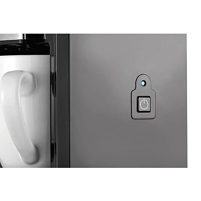 Brews and dispenses two fresh cups of coffee in just 3 minutes